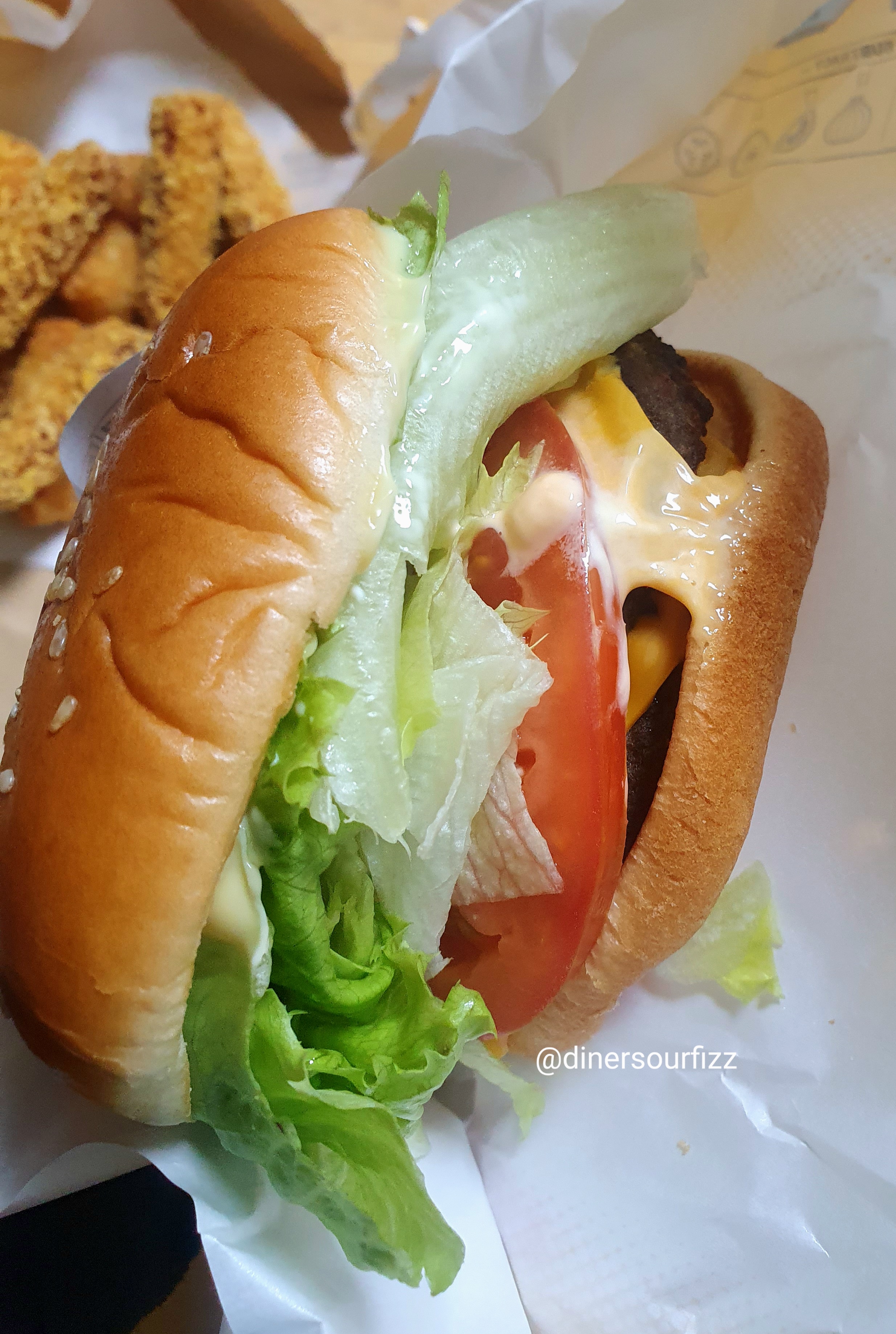 수제버거 느낌으로 채소가 싱싱했다.