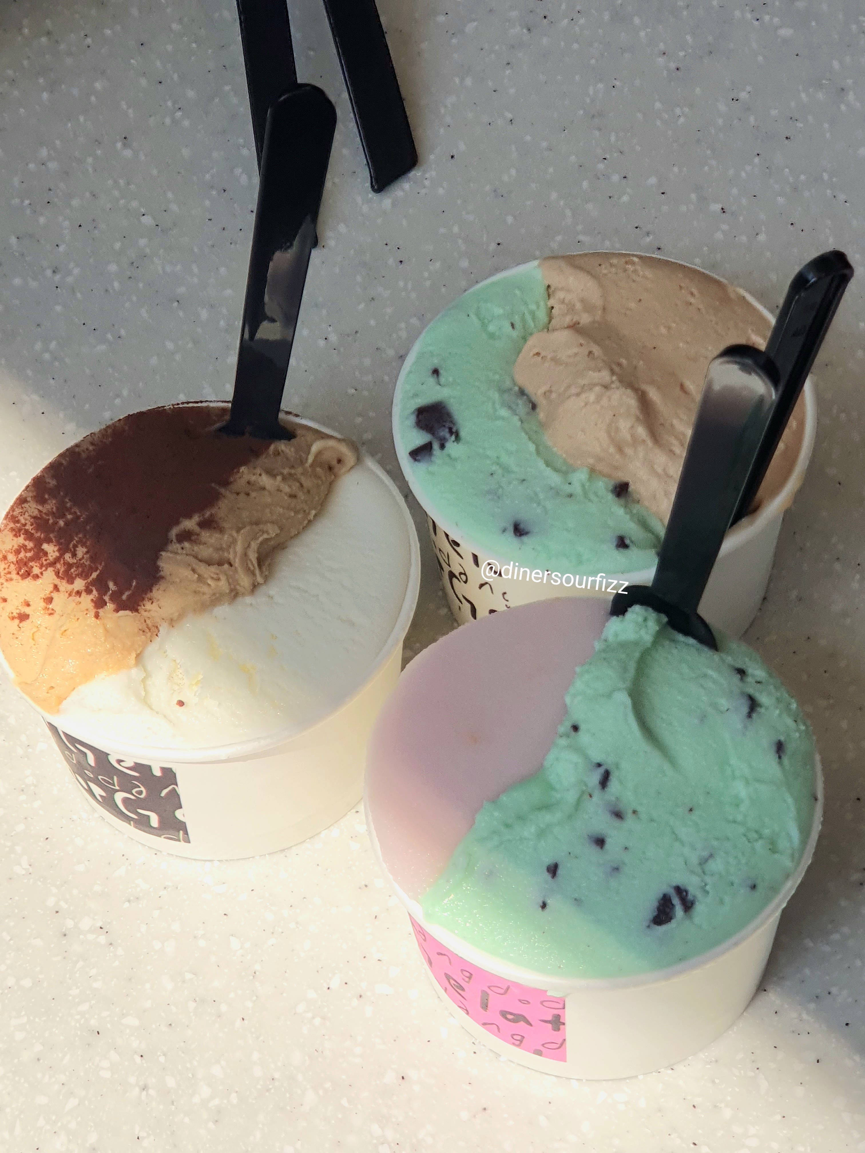 왼쪽부터 티라미수&소금, 민트초코칩&개암나무열매.