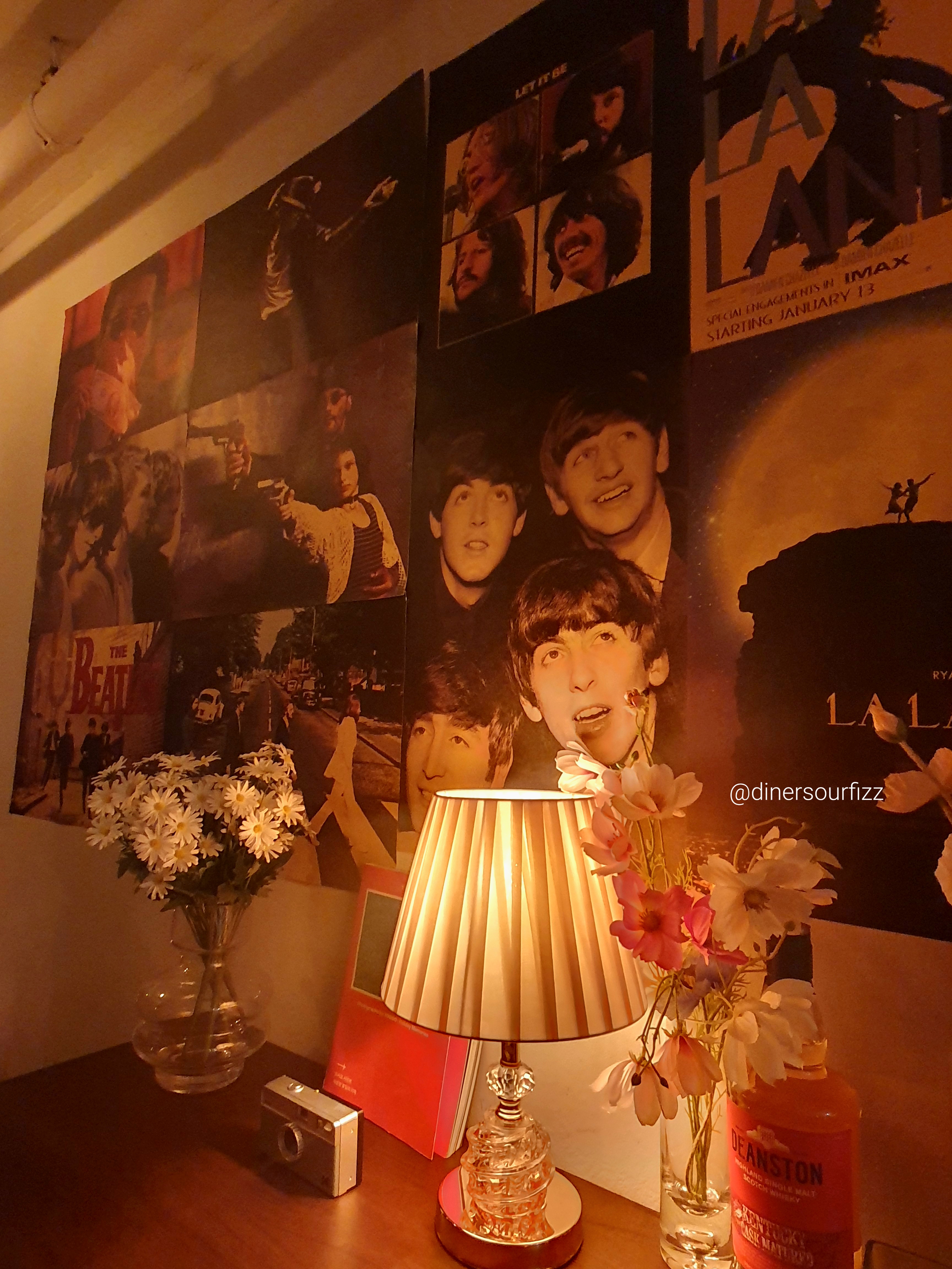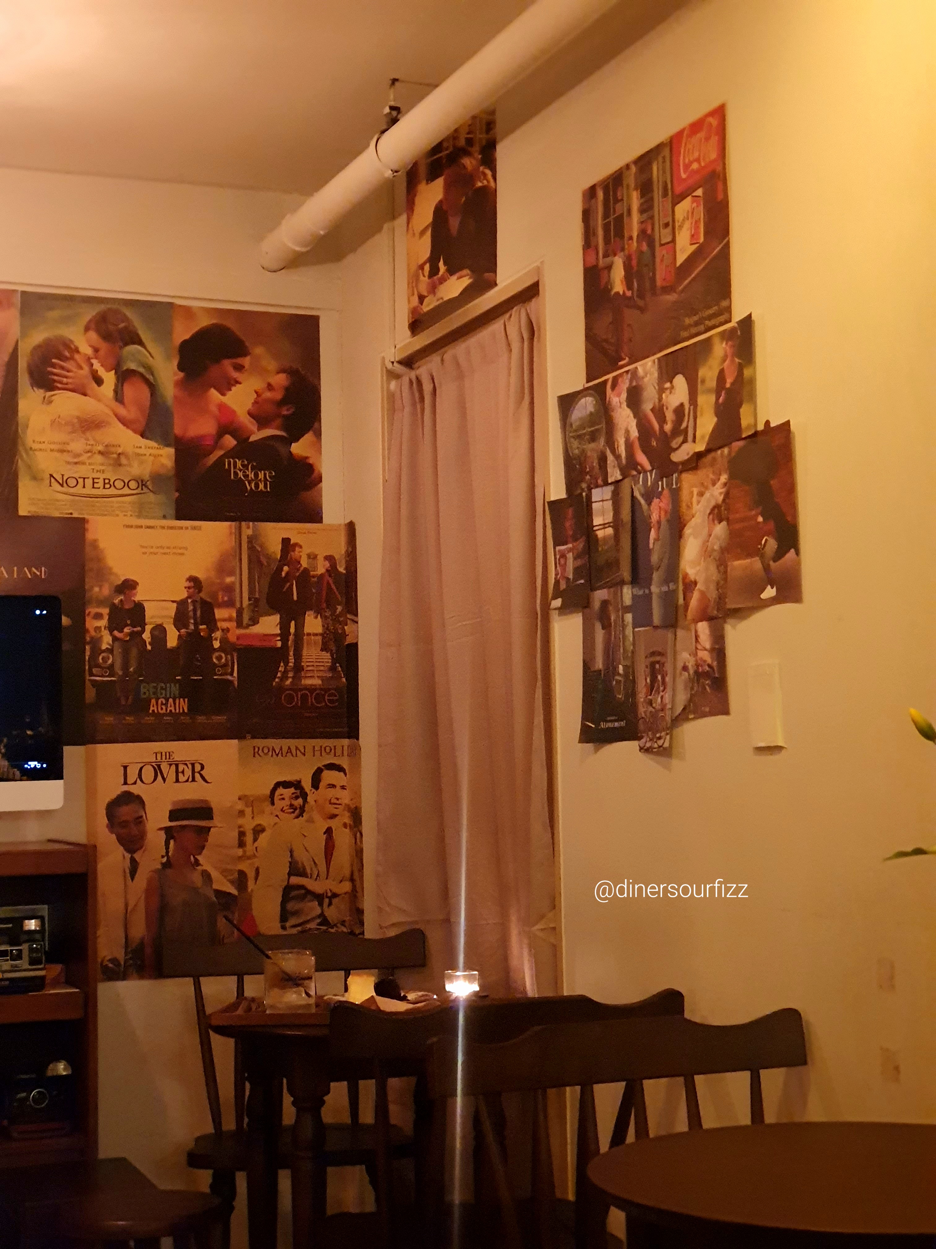 외국 영화 포스터를 벽지처럼 붙여놓았다.