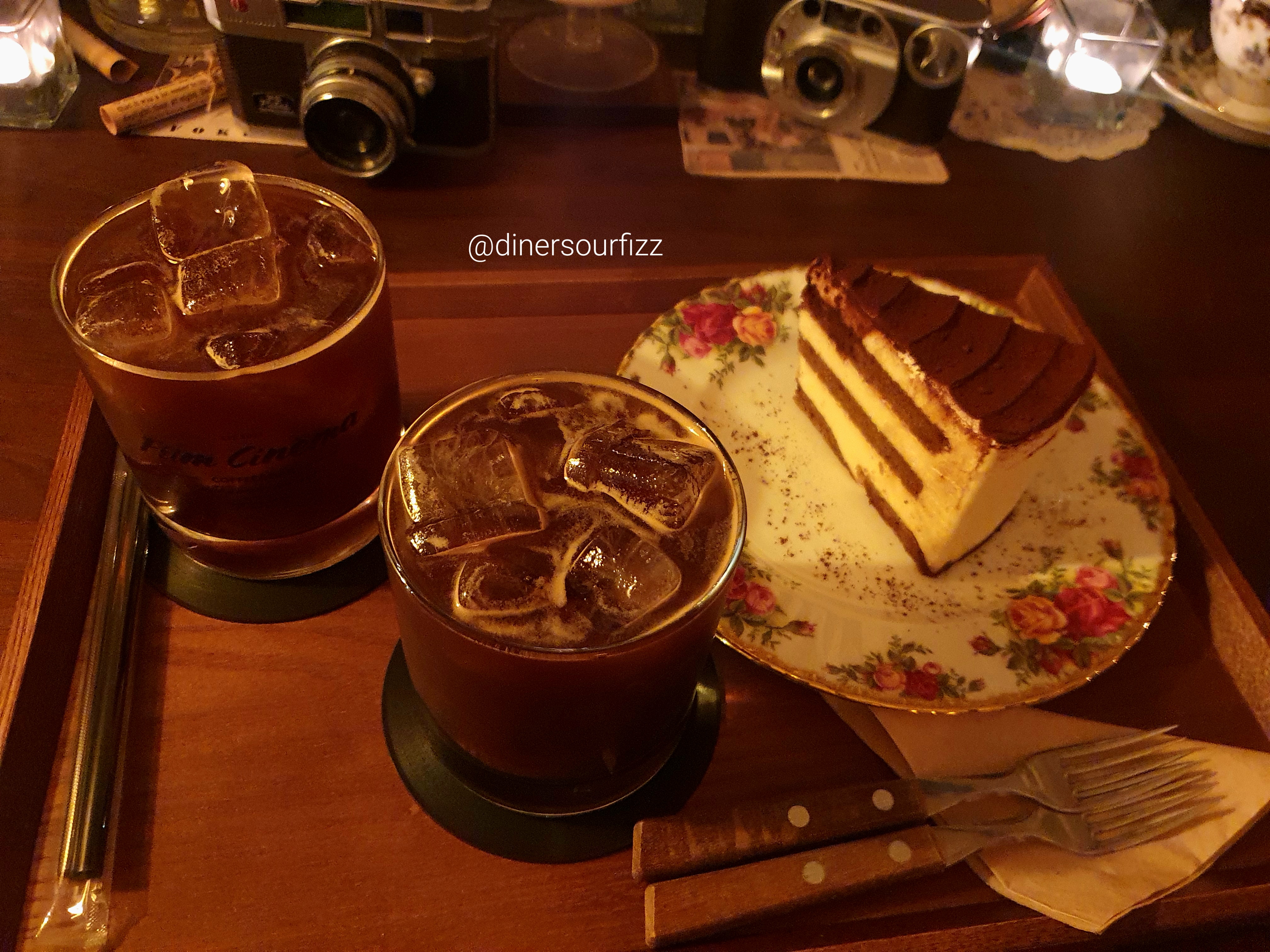 우리가 시킨 건 아아 두 잔에 티라미수 케이크.