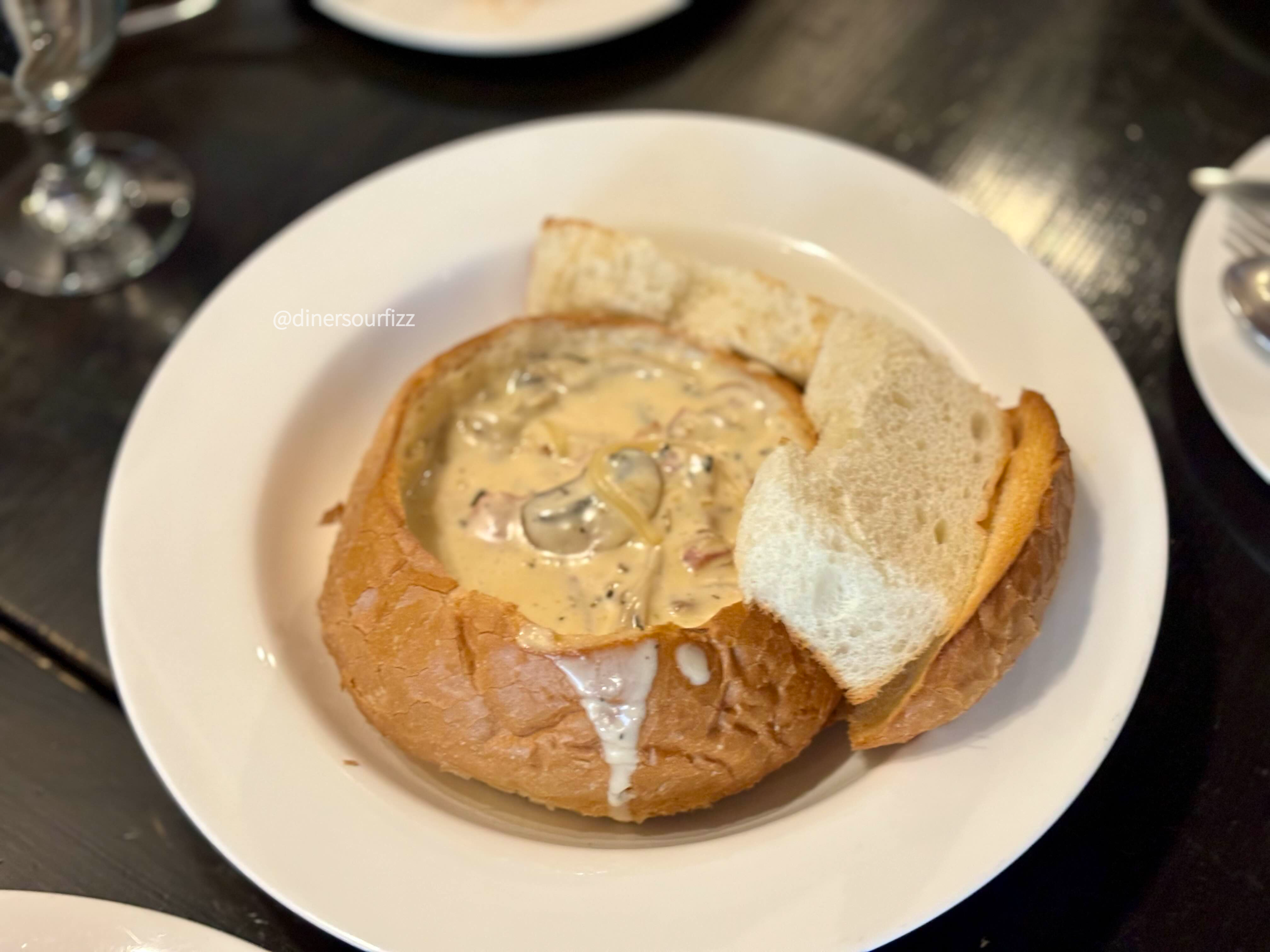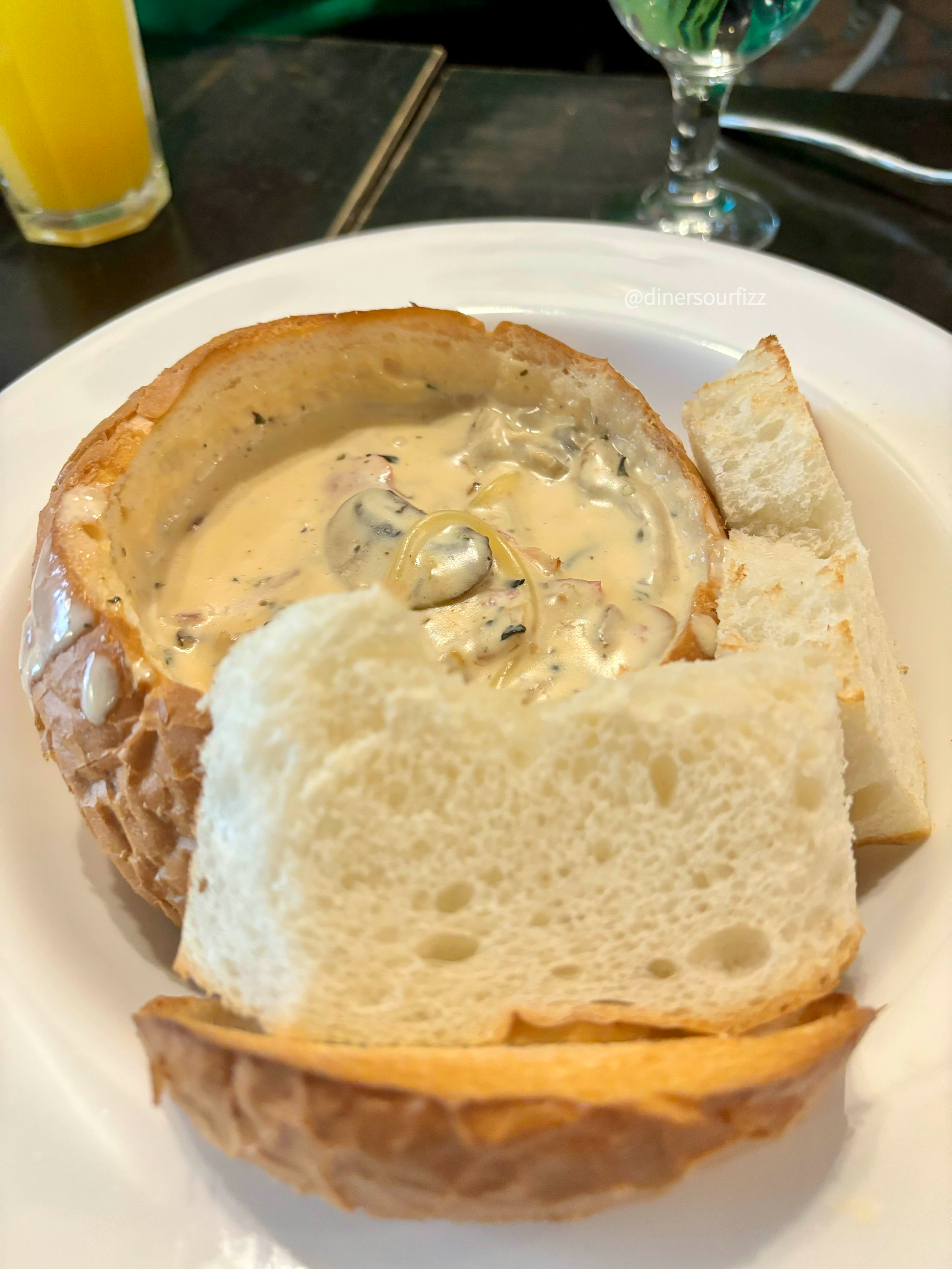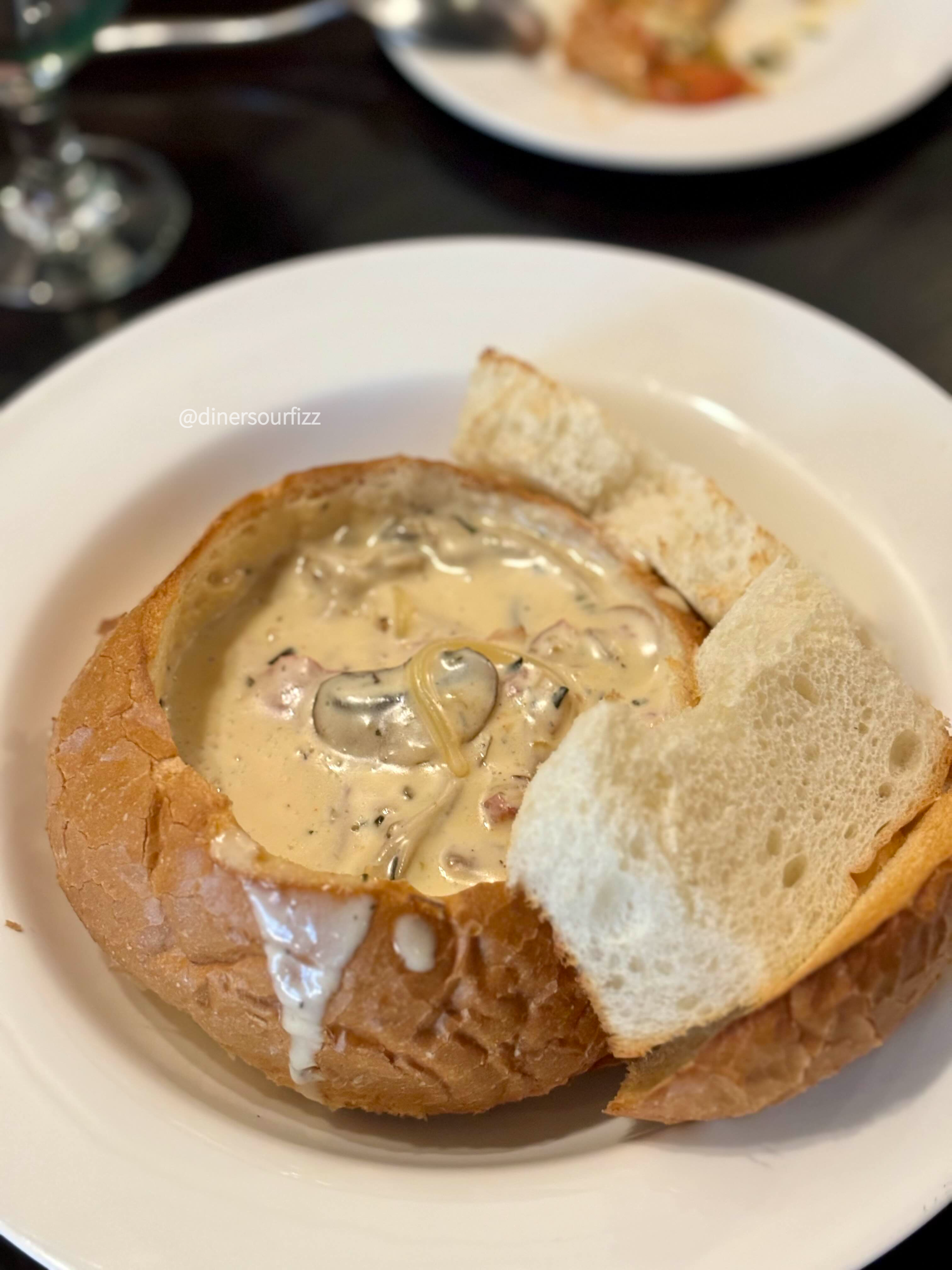 빠네는 빵의 속을 파서 크림 파스타를 채운 음식이다.