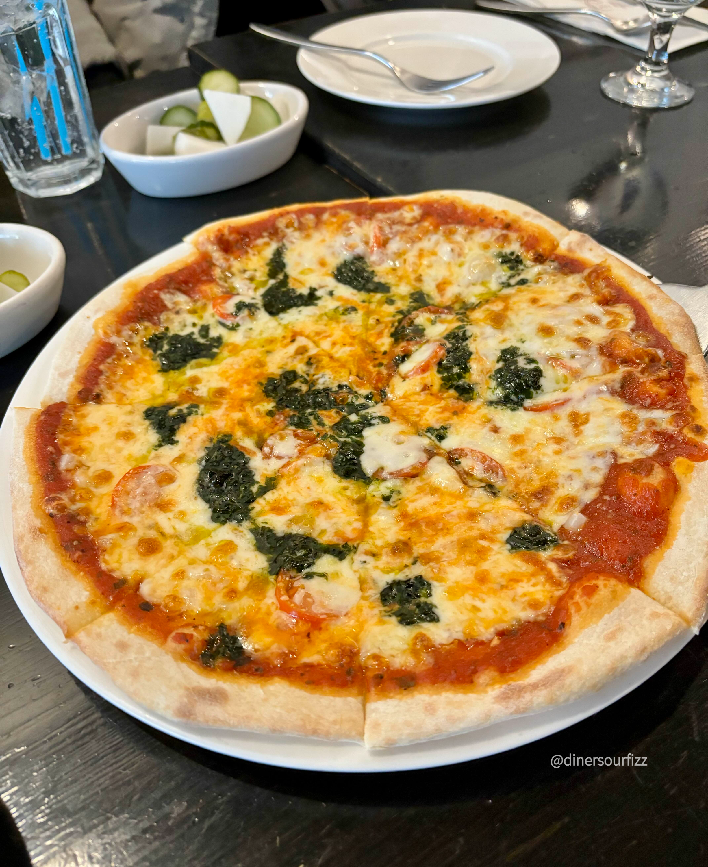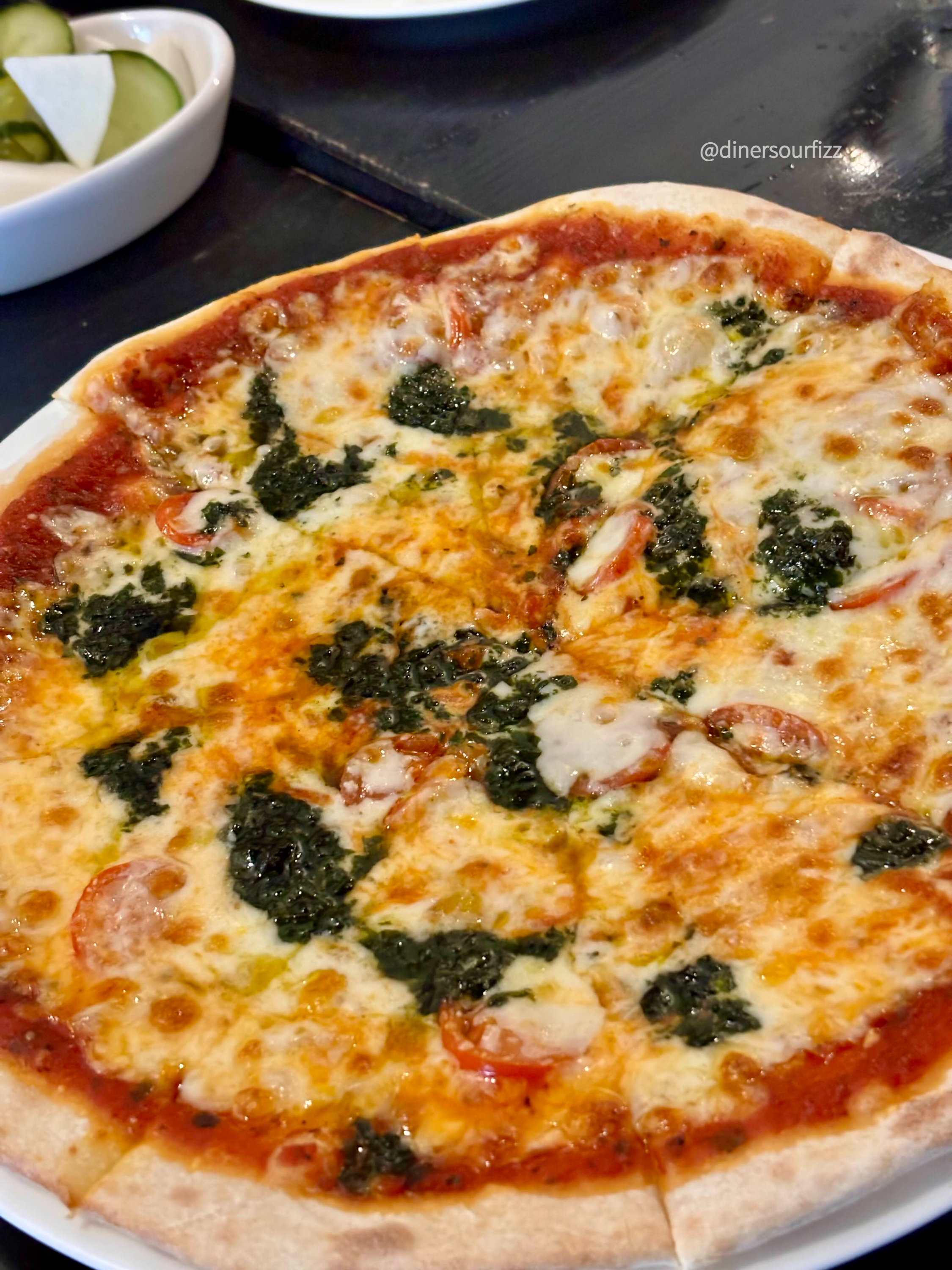 토마토소스위에 모짜렐라와 바질페스토를 올려