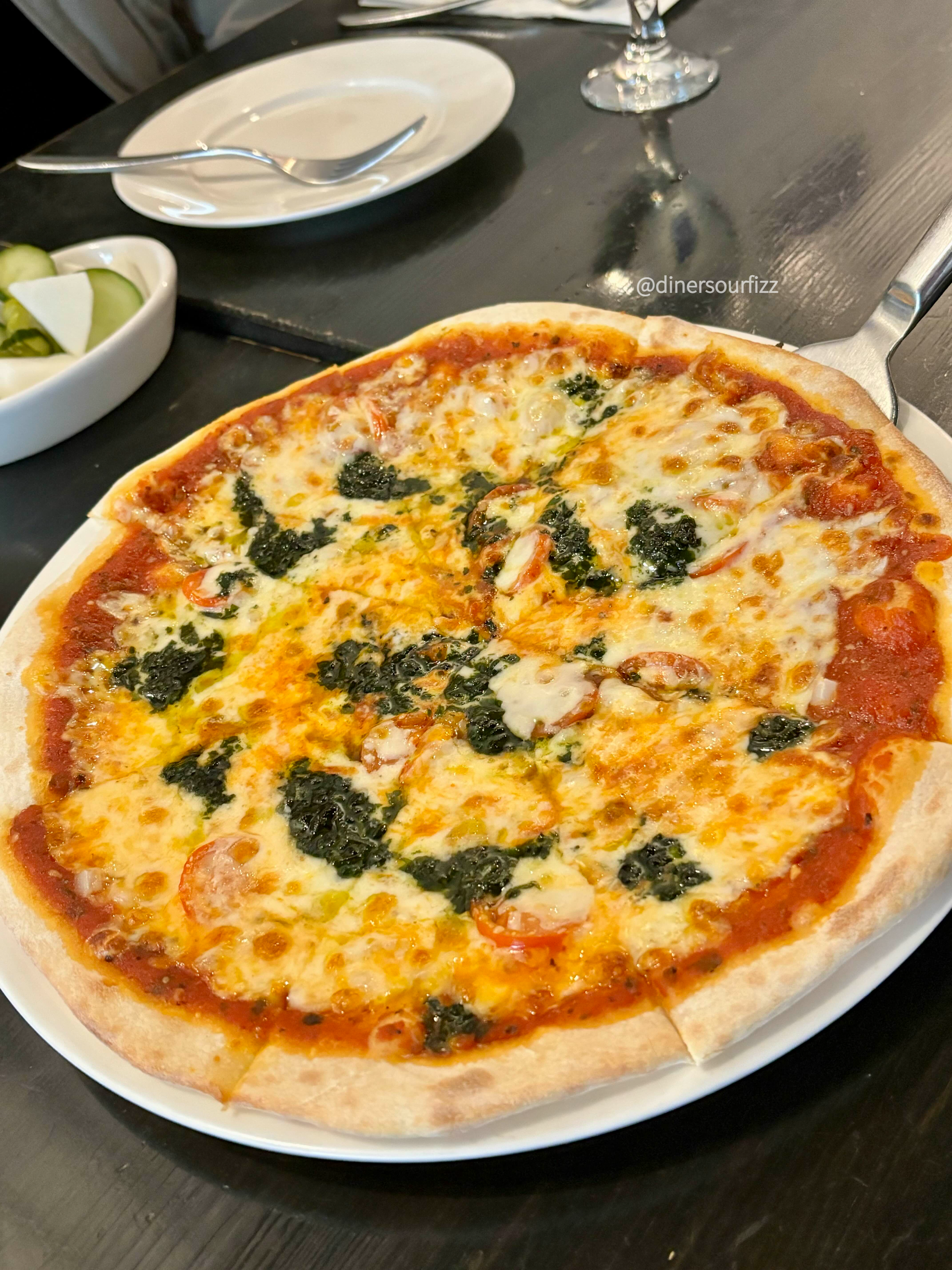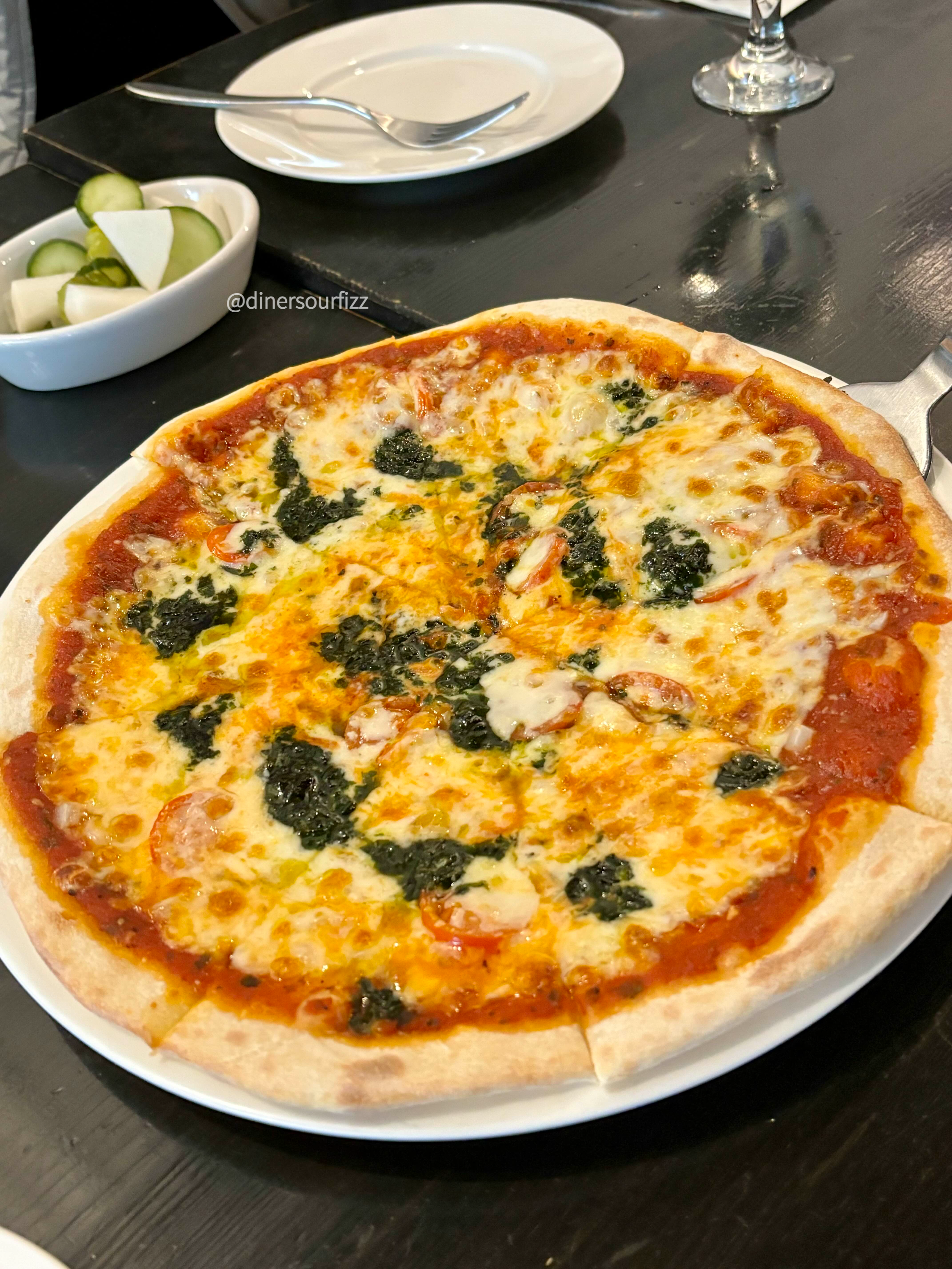 구운 맛으로 무겁지 않고 신선한 맛의 피자다.